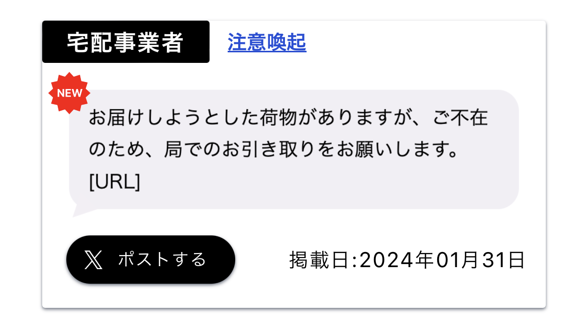 また、詐欺SMSギャラリーはX(旧Twitter)でポストすることが可能です。詐欺SMSについてフォロワーに注意喚起をしたい時などにもご活用ください。