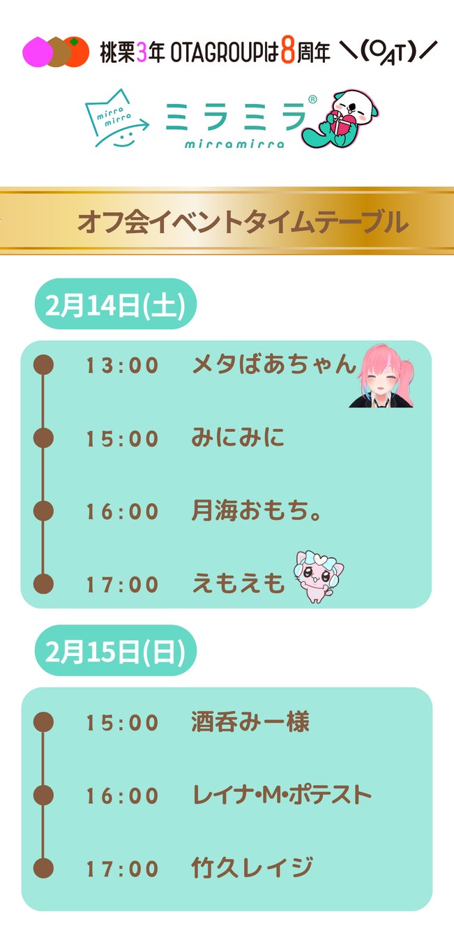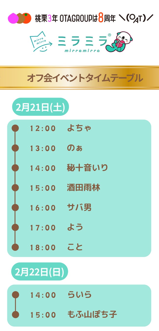 ミラティブパートナー事務所「ミラミラ」メンバーによるミニオフ会を会場にて開催いたします。1枠8名様限定ですので必ずチケットをお取りいただき来場ください。