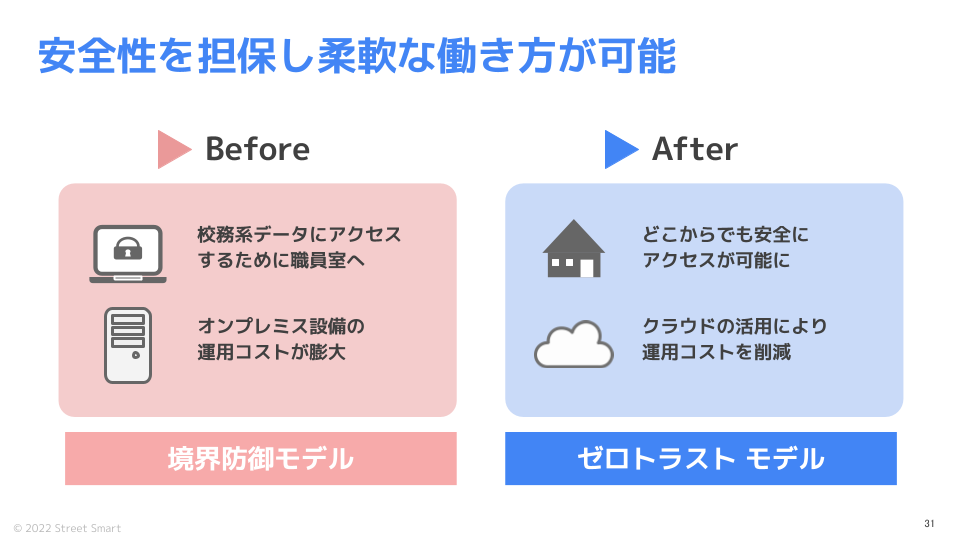 ストリートスマートからは、「Google Workspace for Education Plus」で実現する次世代の教育環境について、【セキュリティ】【教育ビッグデータの分析・活用】の2つの視点でお伝えします。