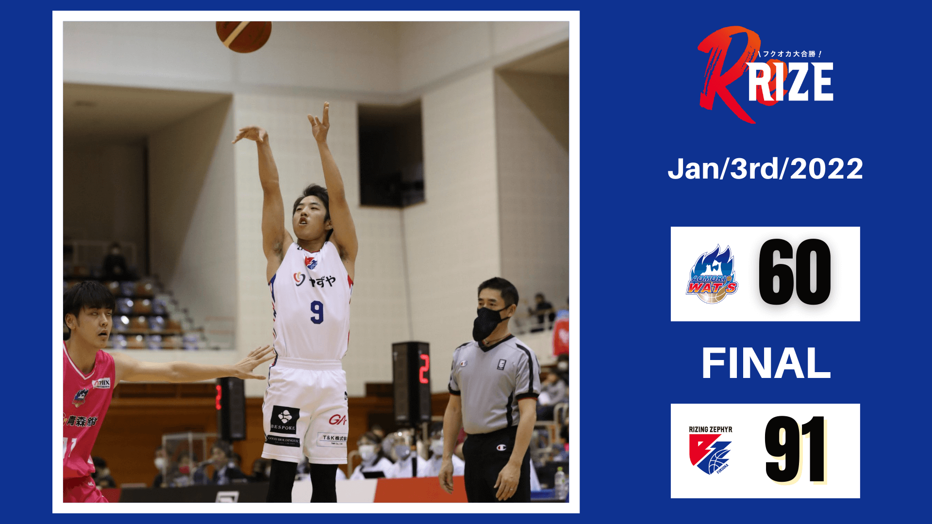 2022年1月3日(月)に開催されましたBリーグ第15節【青森ワッツvs,ライジングゼファーフクオカ】において“青森75-86福岡”の結果となりましたことお知らせいたします。