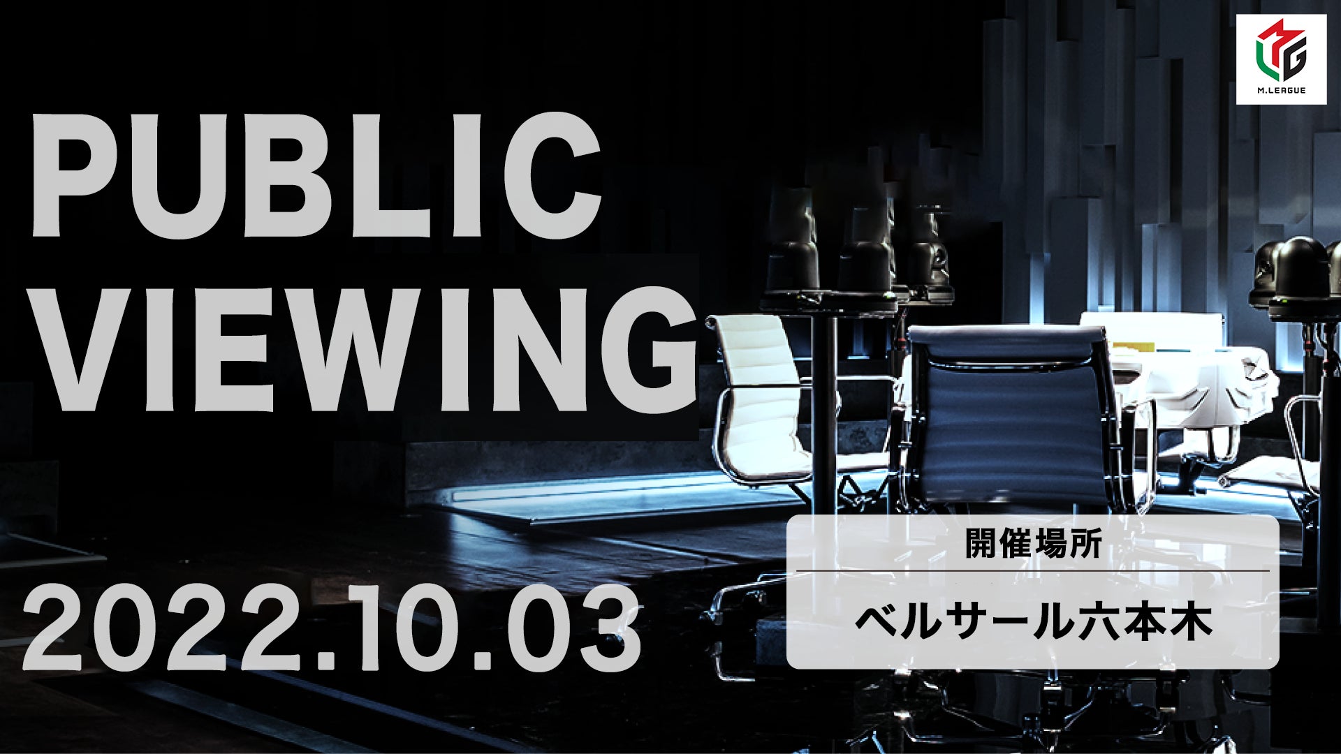 一般社団法人Mリーグ機構(本社:東京都港区、代表理事:藤田晋)は、「Mリーグ2022-23パブリックビューイング」を2022年10月3日(月)に開催することを決定いたしました。なお、開催にあたり観戦チケットをサポーター先行販売は2022年9月5日(月)正午より、一般販売は2022年9月7日(水)正午より販売開始することをお知らせいたします。