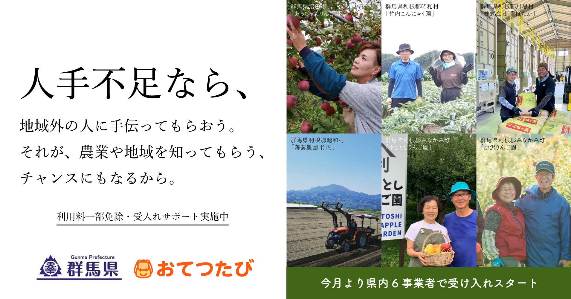 おてつたび、群馬県で実証|県内農業者の人手不足解消に向けて利用料一部免除・受入れサポートを開始