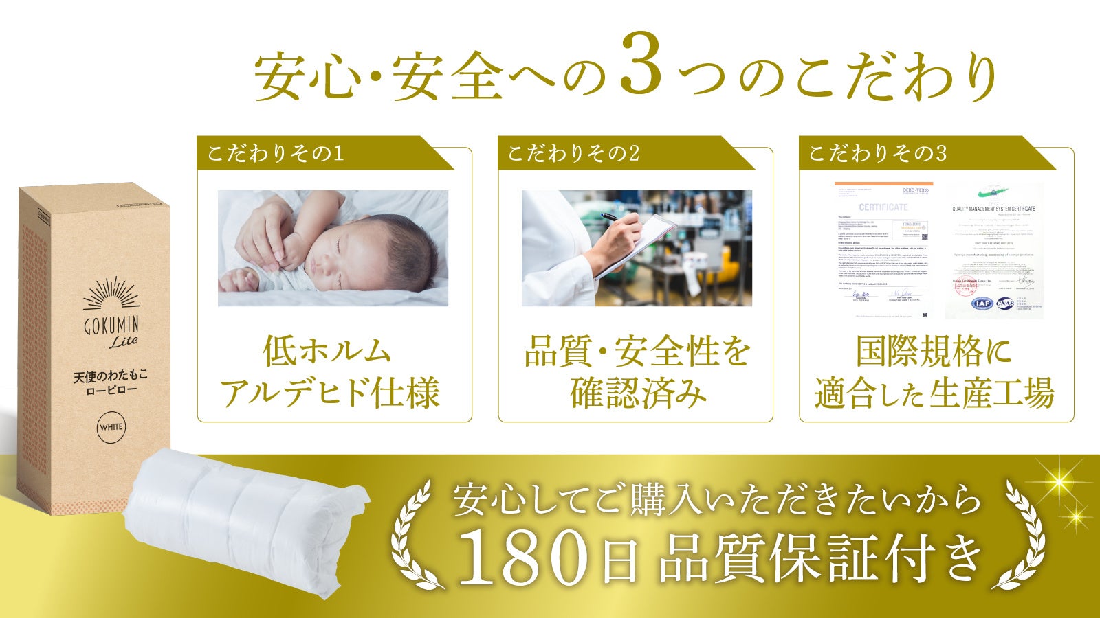 GOKUMIN Liteは、「リーズナブルな手に取りやすい商品が欲しい」といったお客様の声を反映し、GOKUMINの安心安全な商品がお求めやすい価格でご購入いただける“ライト版”として登場しました。累計販売数150万個を突破したGOKUMINシリーズ。日本人技術者の「こだわり」をぜひお確かめ下さい。