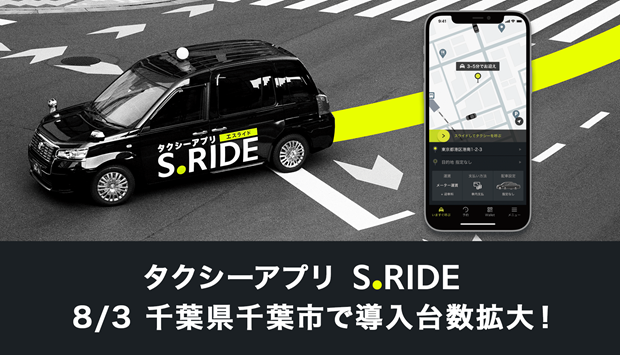 S.RIDE株式会社(本社:東京都港区、代表取締役:西浦賢治、以下、S.RIDE)は、2022 年8月3日から、三ツ矢エミタスタクシーグループの株式会社鹿野西岬タクシー(本社:千葉県千葉市、代表取締役:関口勝裕)のタクシー車両で、タクシーアプリ“S.RIDE®”のサービス※を千葉市で開始します。