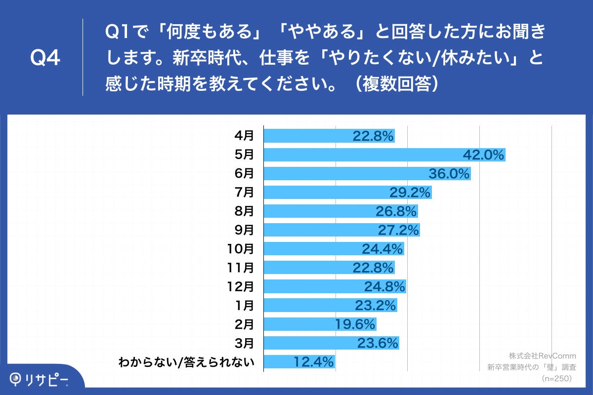 新卒時代の営業職、仕事をやりたくないと感じた時期は「5月」が最多で42.0% 最もやりたくないと感じた業務は「商談」