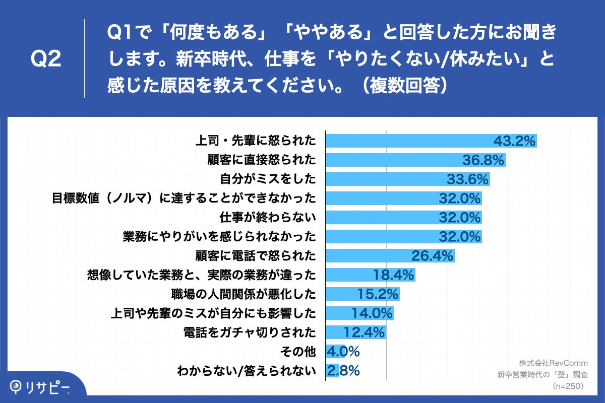 - 新卒営業時の仕事を「やりたくない」と感じた原因、「上司・先輩に怒られた」や「顧客に直接怒られた」など