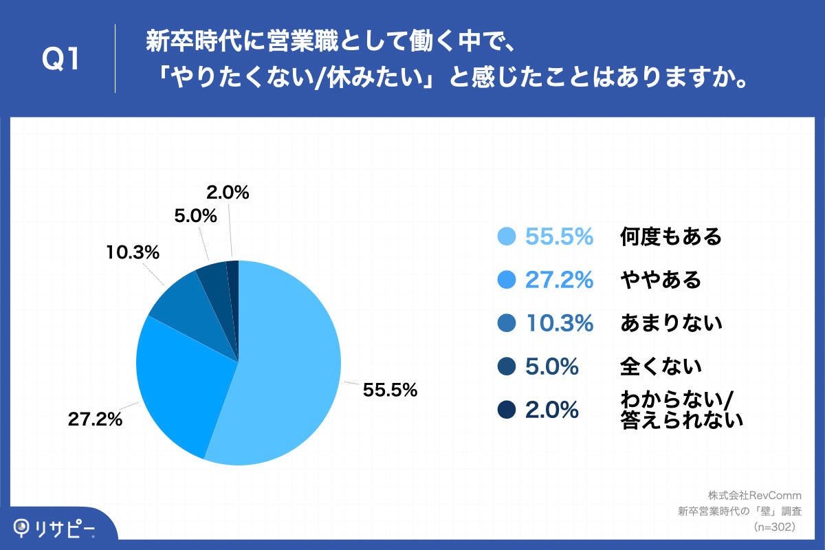 株式会社RevComm(レブコム、本社:東京都渋谷区、代表取締役:會田武史、以下RevComm)は、新卒時代に営業職として働いていた、社会人2年目以上の営業職302名を対象に、新卒営業時代の「壁」調査を実施いたしました。