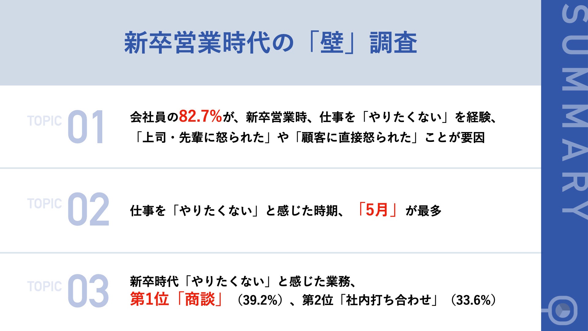 - 会社員の82.7%が、新卒営業時に仕事を「やりたくない」経験