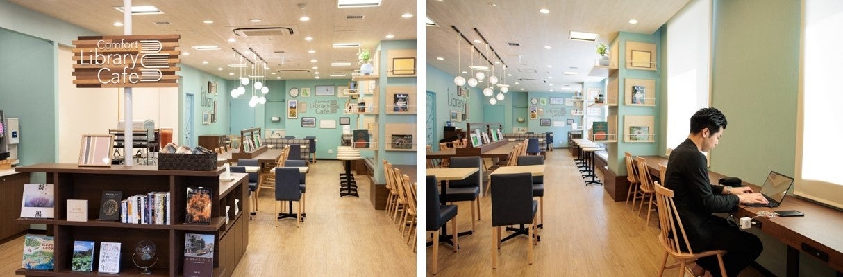 - テレワークや読書で出張中の時間を有効活用 宿泊者は無料で10時から24時まで利用できる Comfort Library Cafe