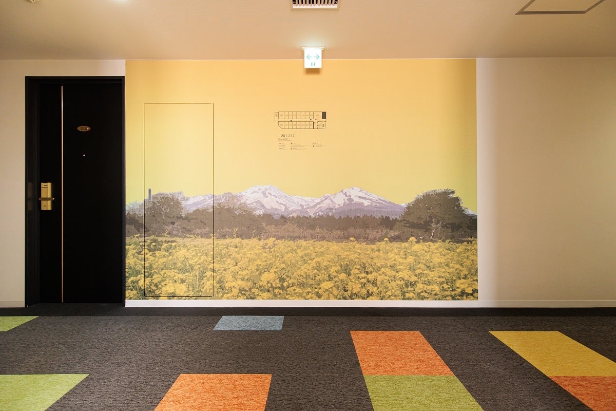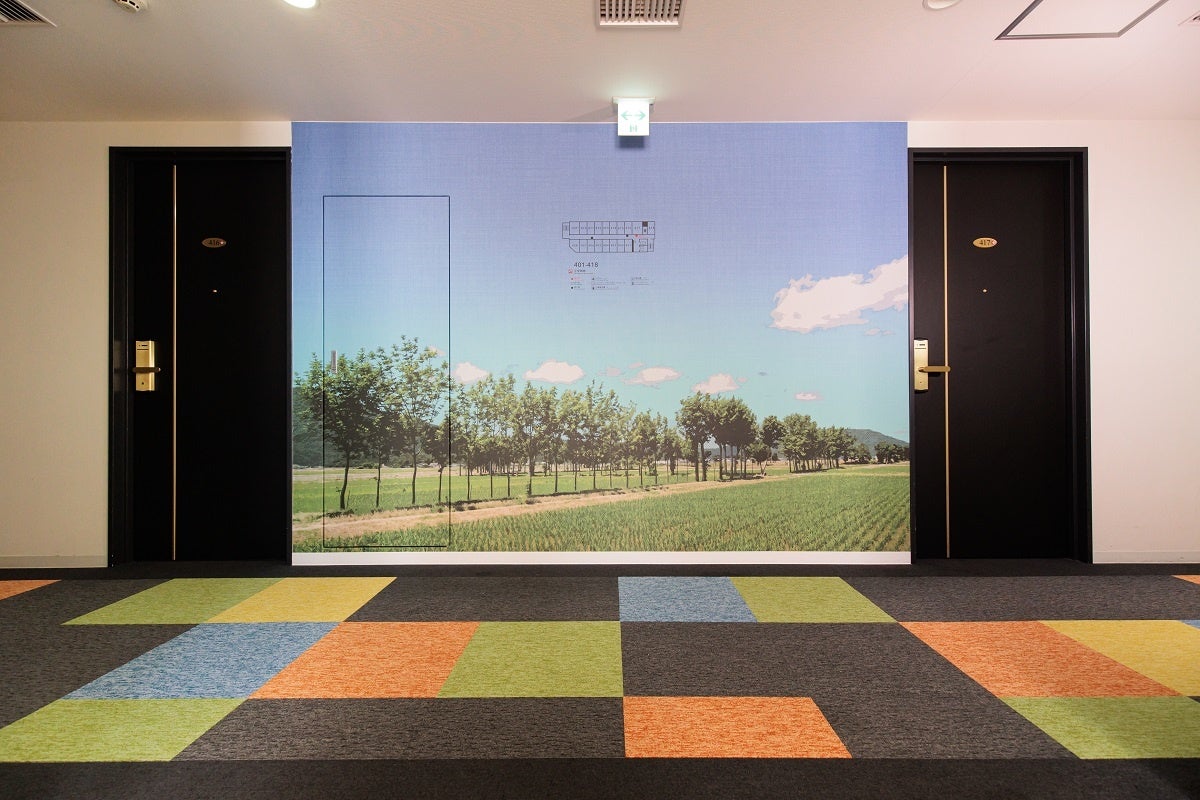 (左)「春の日本海」をイメージした1ベッドルーム (中)「夏の田園」をイメージした1ベッドルーム (右)「秋の大地」をイメージした2ベッドルーム