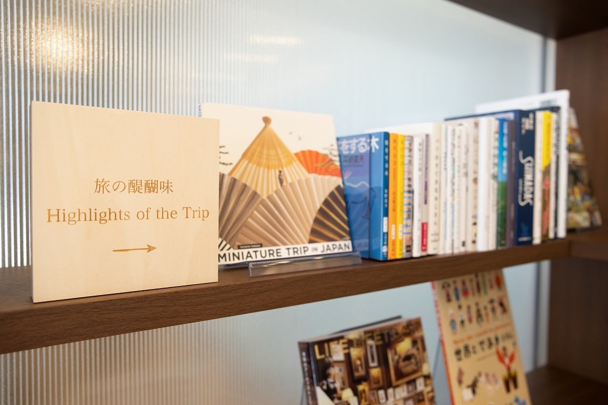 さらに、カフェ内には図書館や公共施設などのさまざまな場所の選書で知られる、ブックディレクターの幅允孝さんがセレクトした、新潟や旅にちなんだ本を100冊以上設置しています。「まちの来歴」「旅の醍醐味」「心と体を整える」「心地よい時間」というホテルで心地よい時間を過ごせる4つのテーマのもと、ビジュアルブックから読み物まで、さまざまな本をご用意しています。佐渡島の伝統工芸品や新潟の特産品である西洋梨ル・レクチェのアートをはじめとしたディスプレイも、本とともに旅を彩ります。