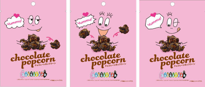 「チョコレートポップコーン」はチョコレート蜜の甘さとポップコーンの塩気があとを引く、手が止まらなくなる味わいです。「バーバパパ」の表情豊かなパッケージとなっており、3種類の中からお好みに合わせて選ぶことができます。