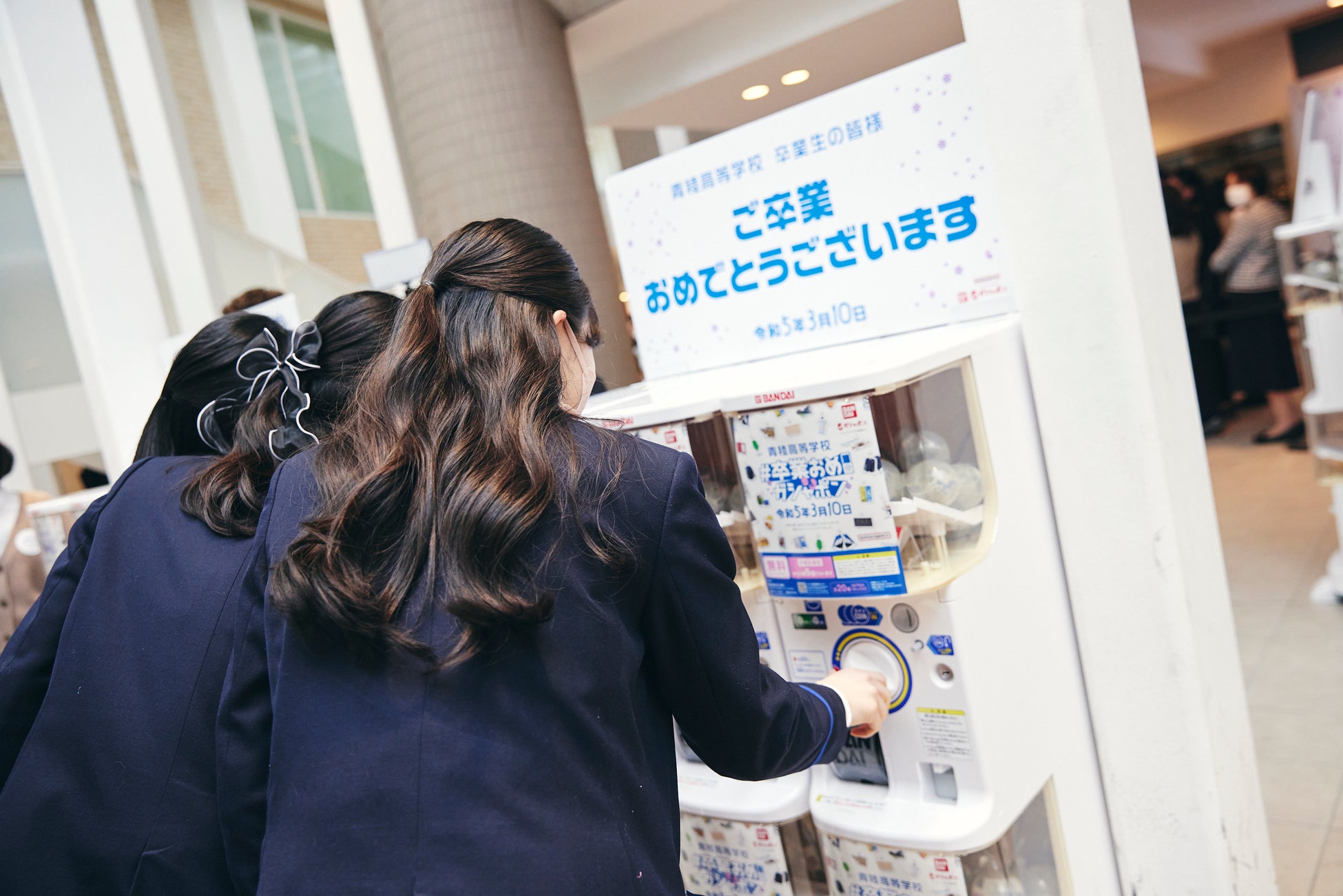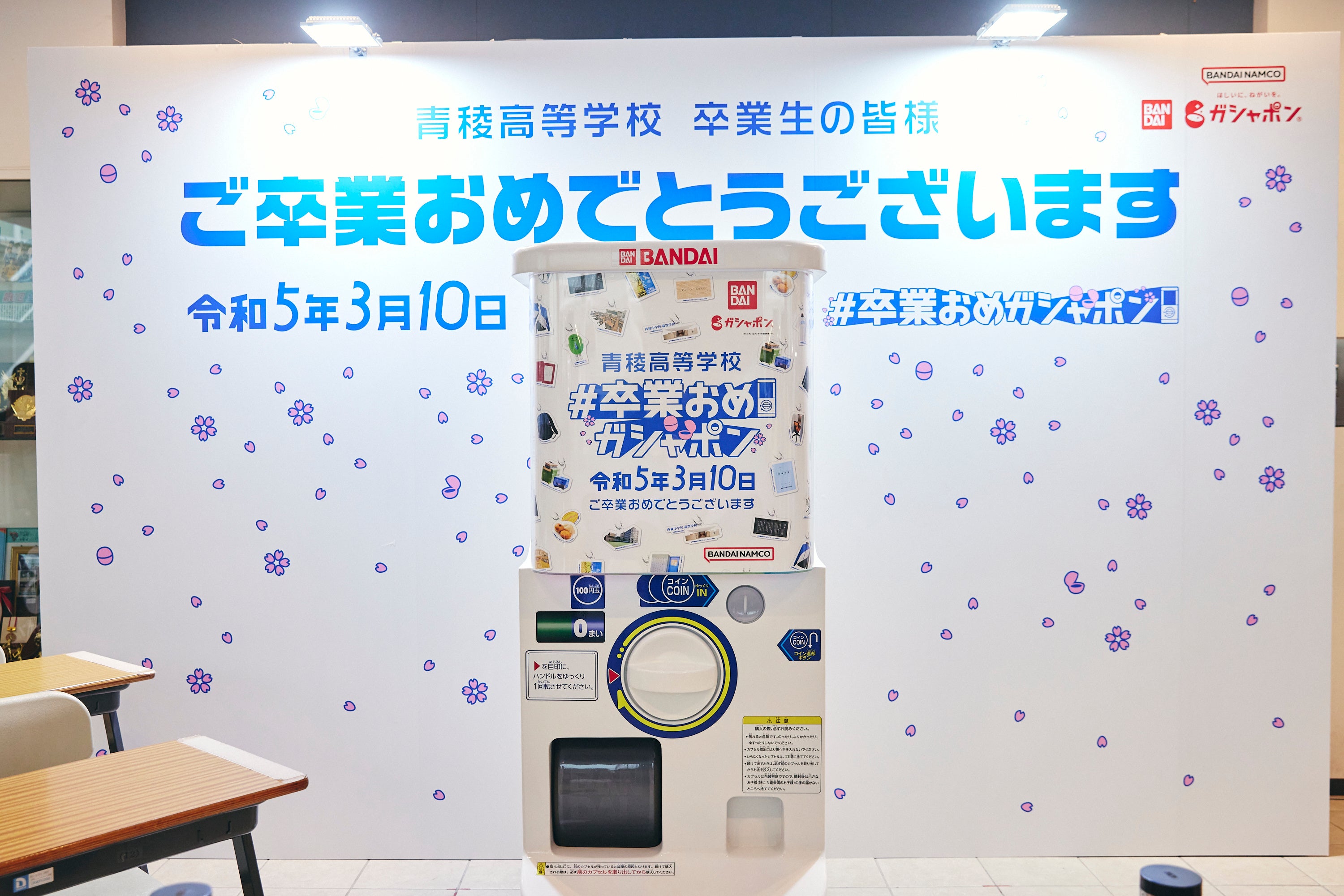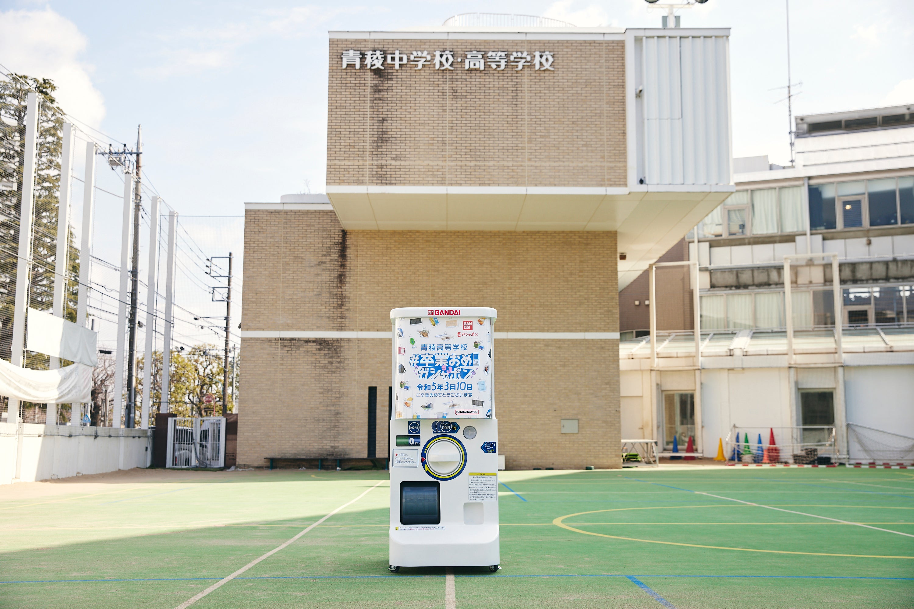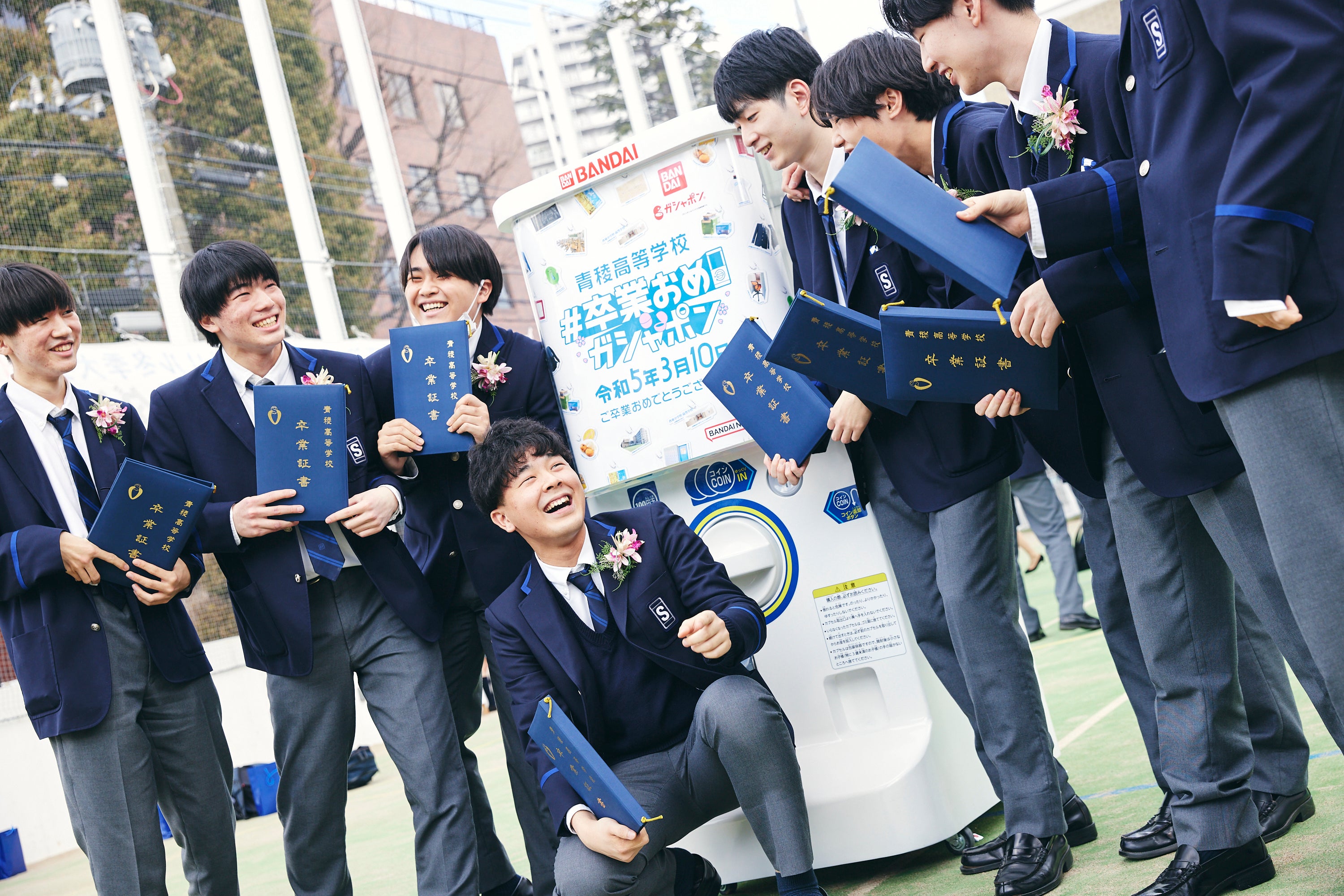 株式会社バンダイ ベンダー事業部(本社:東京都台東区)と青稜中学校・高等学校(東京都品川区)は、今年度卒業する高校3年生に向けた、特別なサプライズイベント「#卒業おめガシャポン」を、2022年度の卒業式当日の2023年3月10日(金)に実施しました。