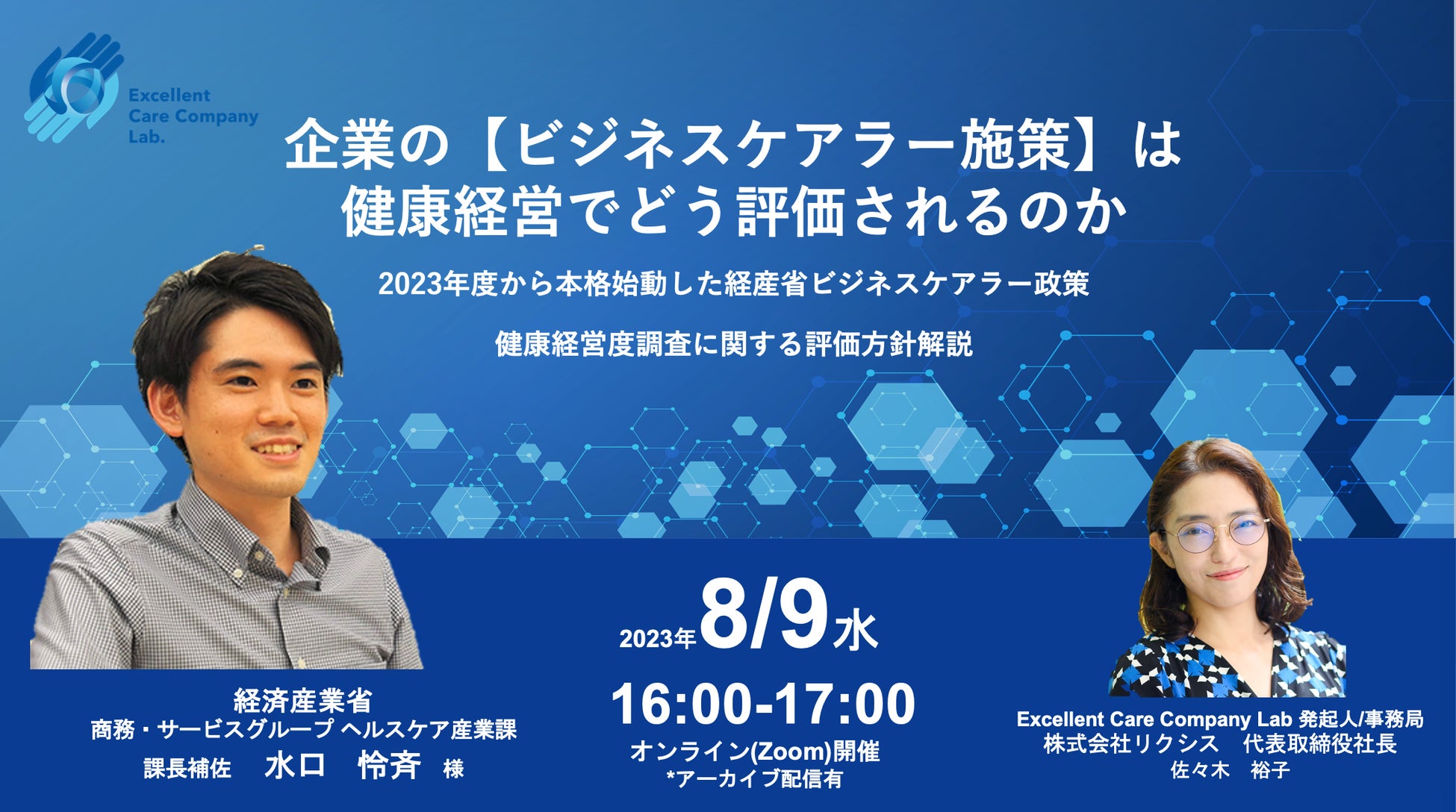 8/9(水)経産省担当課長補佐に聞く「企業の【ビジネスケアラー施策】は健康経営でどう評価されるのか」オンラインセミナー開催