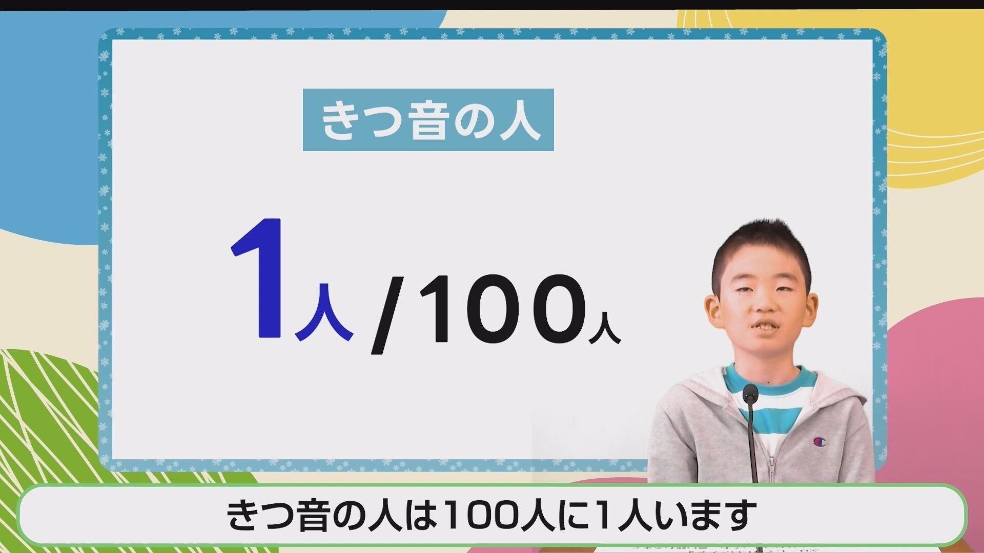 入間ケーブルテレビ株式会社が協力。昨年度第1回のフェスティバルで「吃音・難聴等のことをみんなに知ってもらいたい」という姿勢に感銘を受け、協力してくれました。先生のリクエストによりアナウンス教室を開催し、児童がニュース番組に出演したほか、今回のフェスティバル用に、吃音・難聴の紹介動画を制作(もちろんキャストはことばの教室に通う児童!)しました。