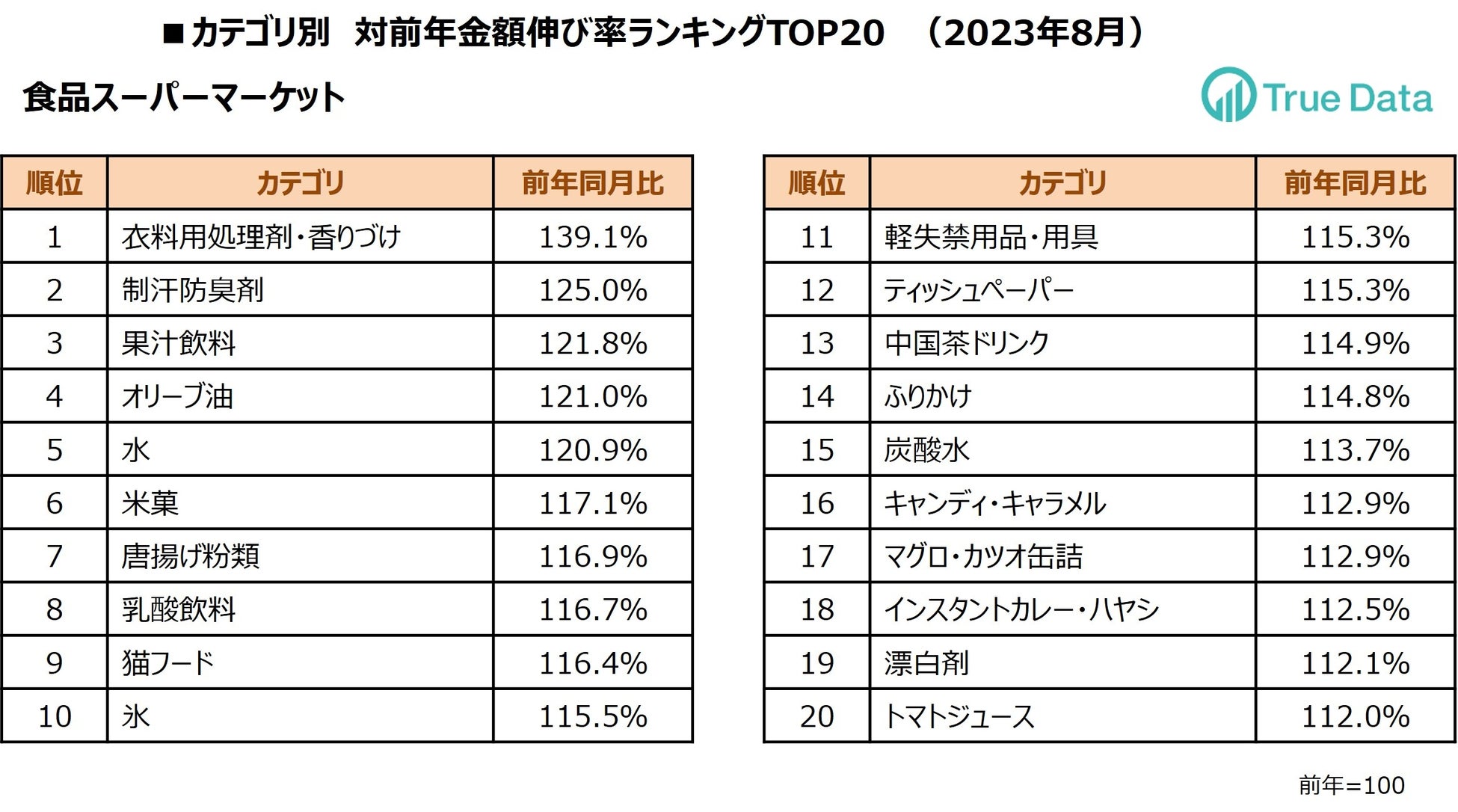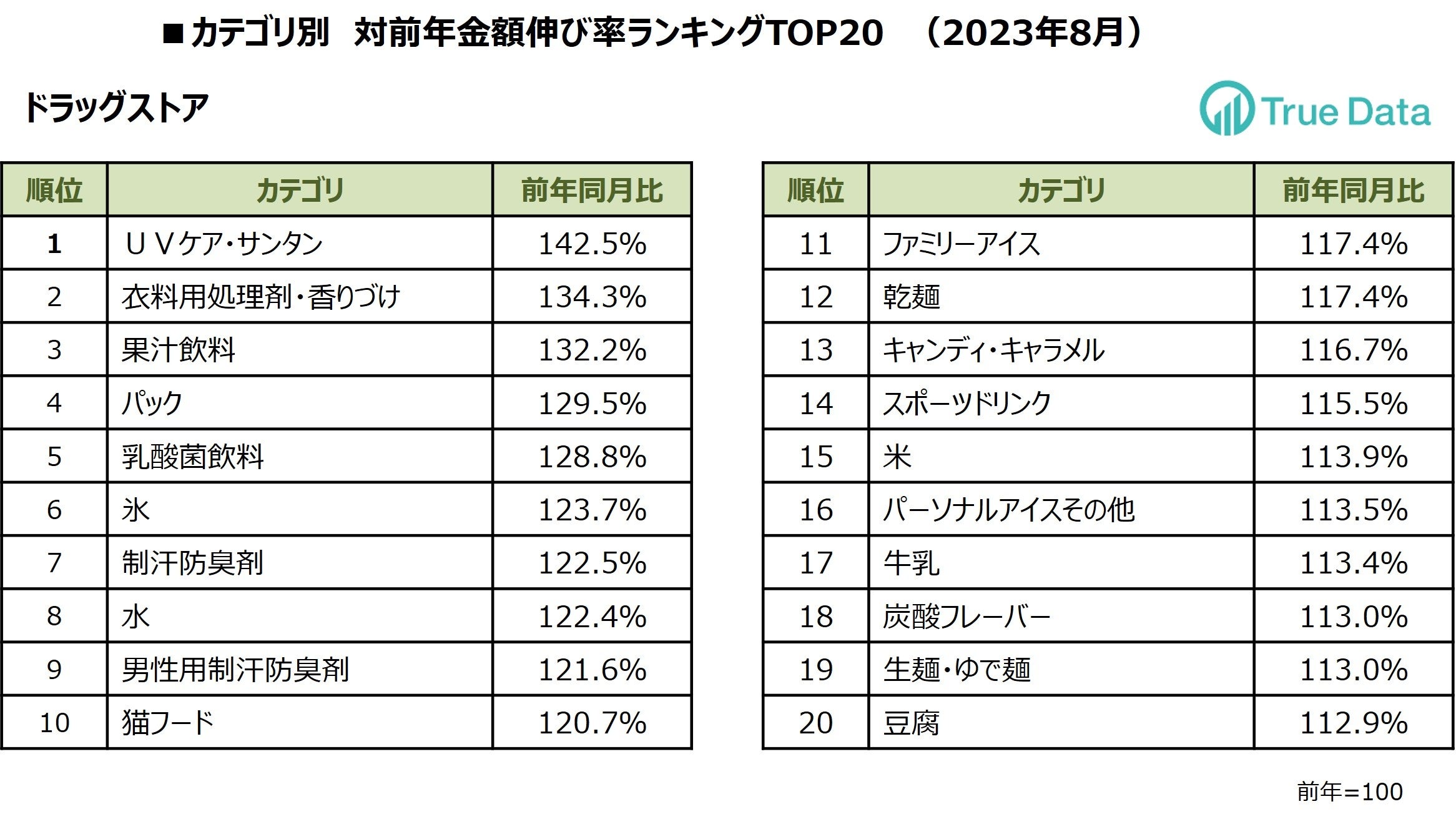 ~ドラッグストア、食品スーパーマーケット 対前年伸び率TOP20カテゴリを発表~