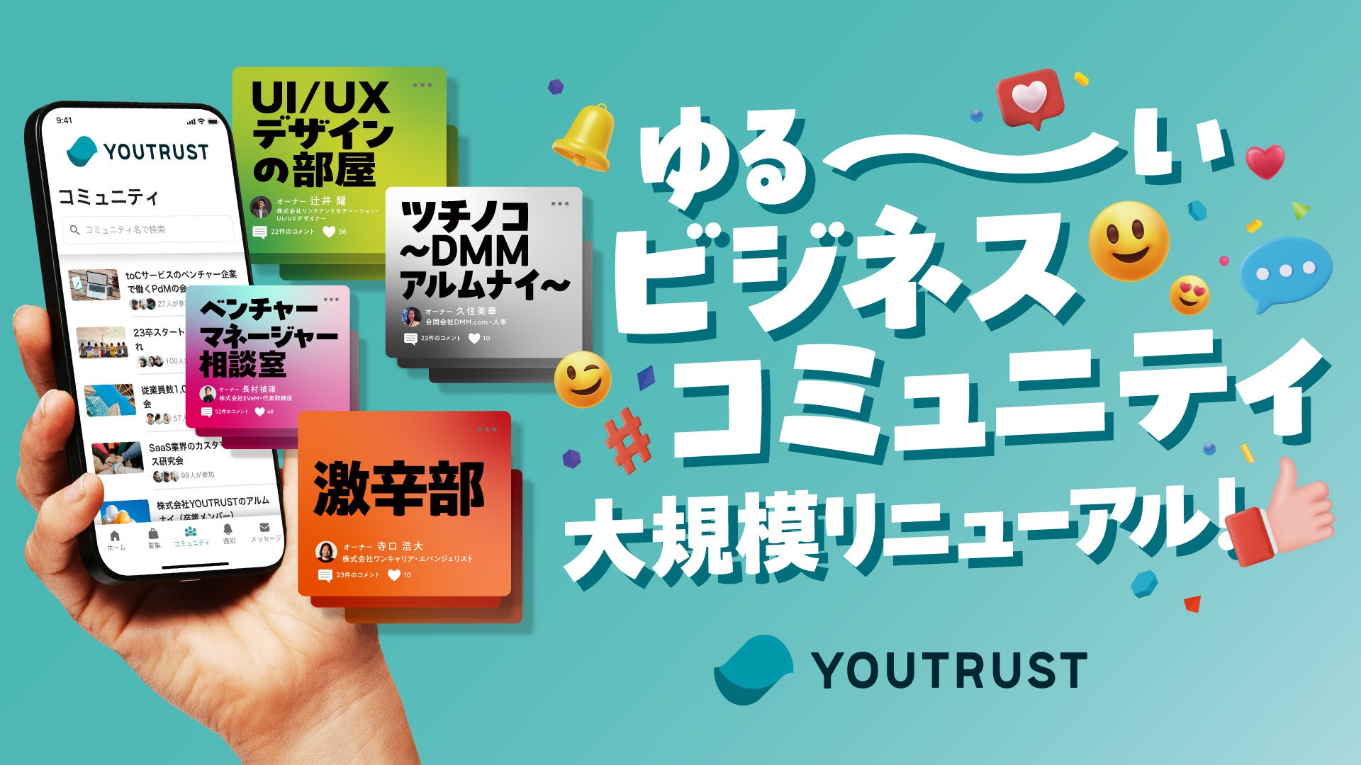 日本のキャリアSNSおよびネットワークリクルーティングサービスの「YOUTRUST」を開発・運営する株式会社YOUTRUST(本社:東京都渋谷区、代表取締役CEO:岩崎由夏、以下「当社」)は、YOUTRUSTにおける「コミュニティ機能」の大規模リニューアルを実施いたしました。