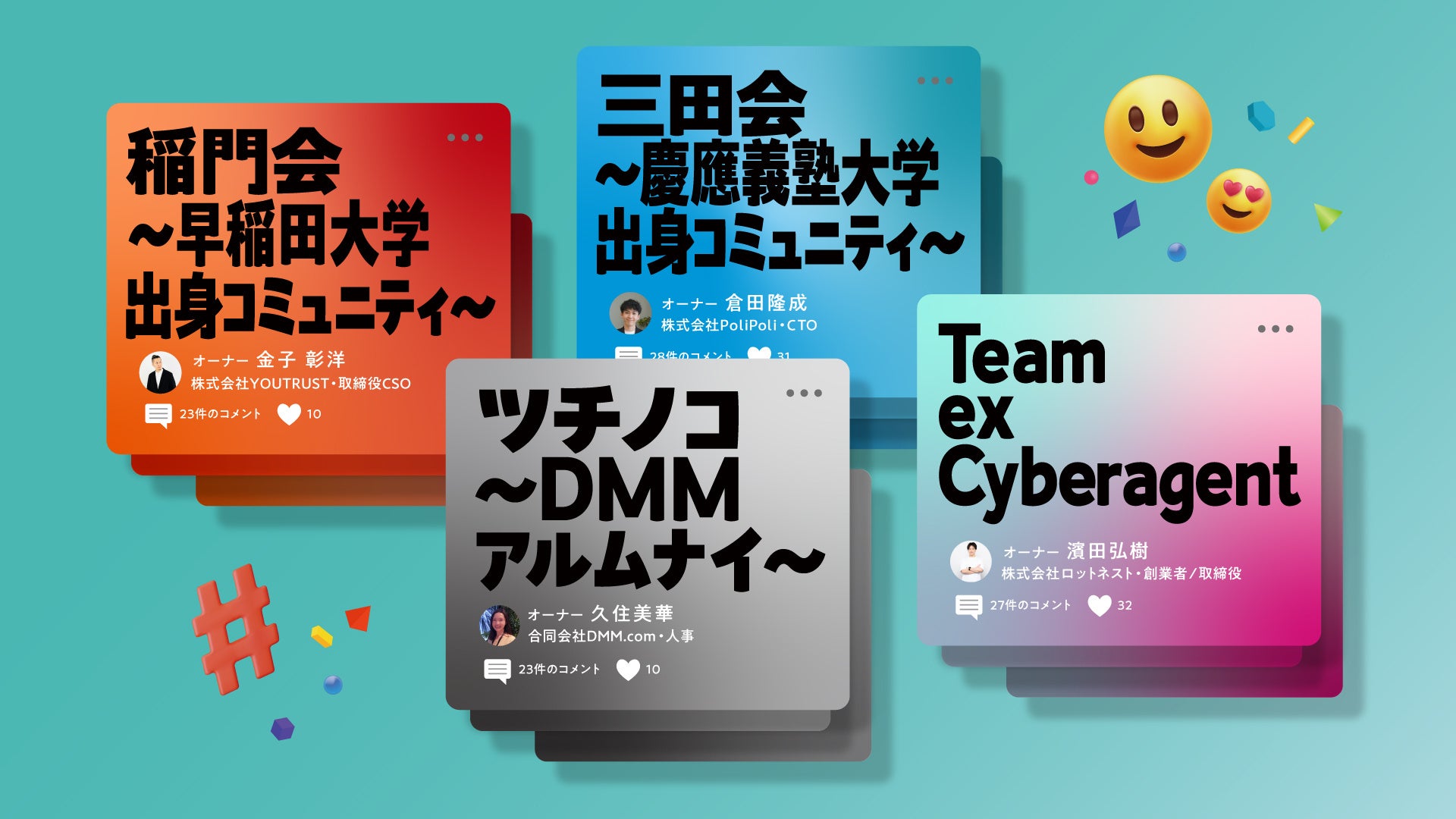 他にも、「1997年生まれの会」といった同級生のつながりや「Fukuoka Startups『福岡』」といった同郷の集いなど、さまざまな共通点を元にしたコミュニティが存在しています。