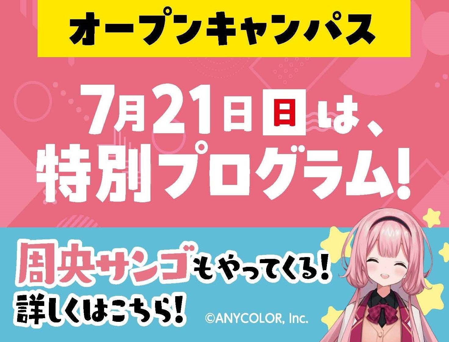 オープンキャンパスに、にじさんじ所属の人気VTuber周央サンゴさんが来学します!