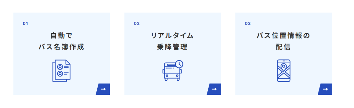 各スクールに共通するバス運行の課題を、以下の機能で解決に導きます。
