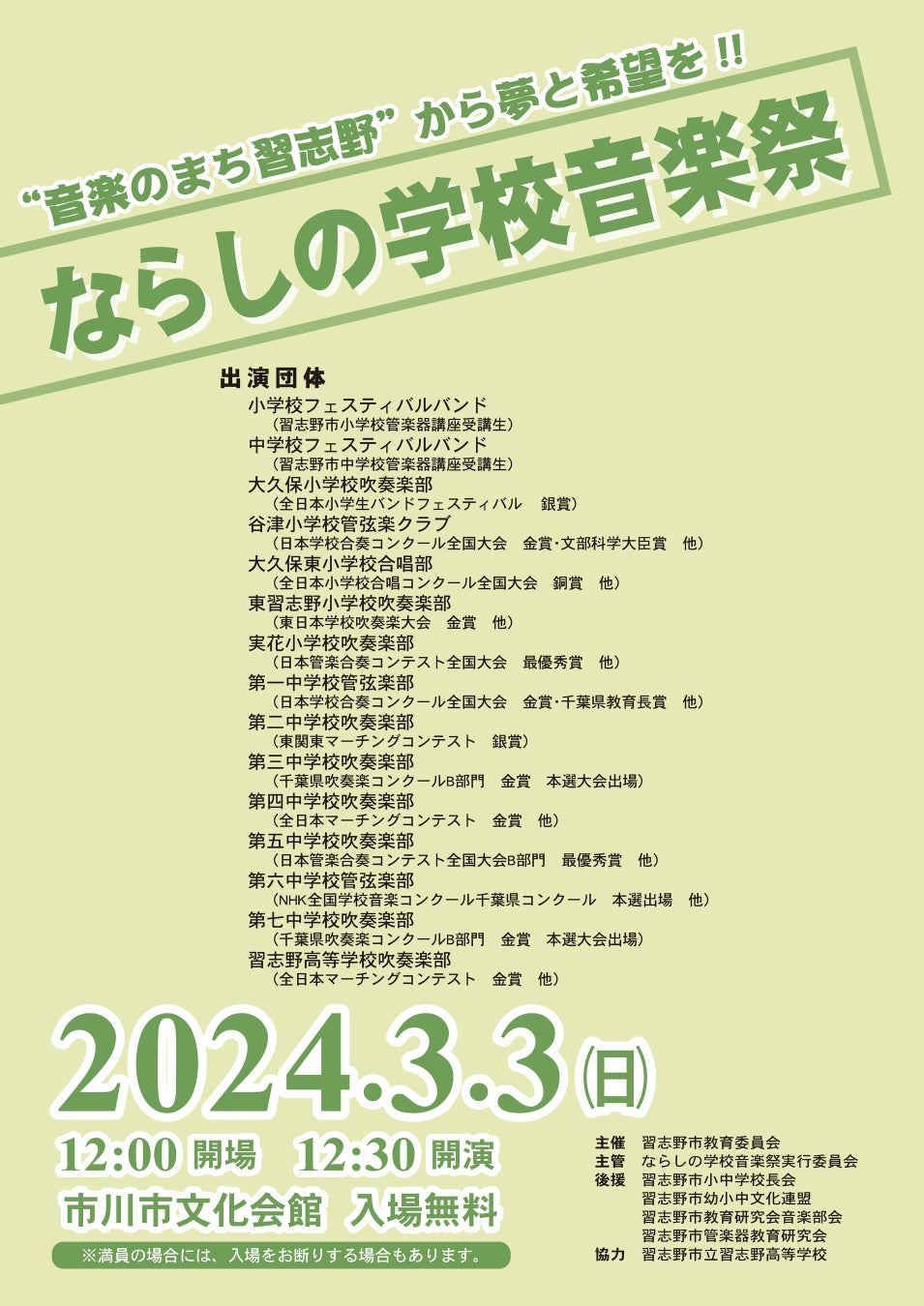 【千葉県習志野市】ならしの学校音楽祭‘24を開催します!