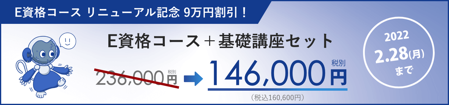 また、リニューアルを記念して、E資格コースと基礎講座セットの申し込みで99,000(税込)引きキャンペーンも継続決定!