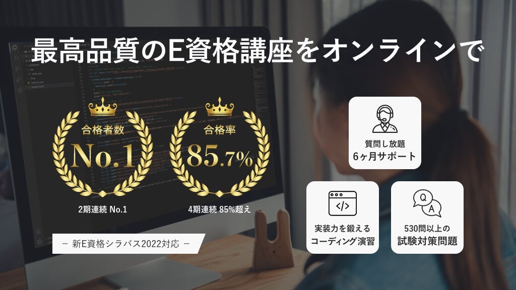 合格するための知識を身に着ける動画講義はもちろんのこと、今回新たにシラバスに盛り込まれた「フレームワーク」を使った実装力を身に着けやすいコースに仕上がっています。
