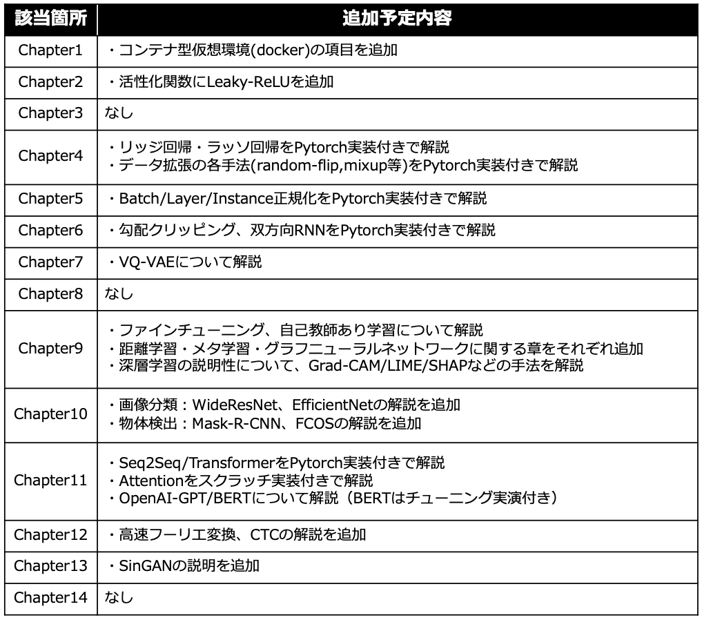 今回、JDLAより発表されたE資格シラバス改訂に合わせ、近年話題のディープラーニングの手法やフレームワーク(PyTorch/TensorFlow※)実装を中心に、コースの内容を大幅にアップデートいたしました。