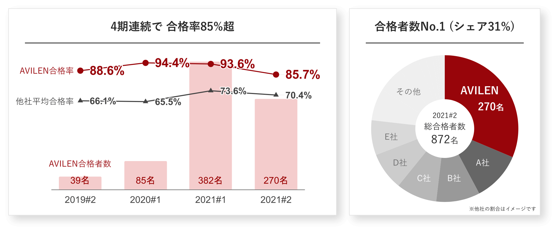 「2期連続合格者数No.1、4期連続合格率85%超」を達成しています。