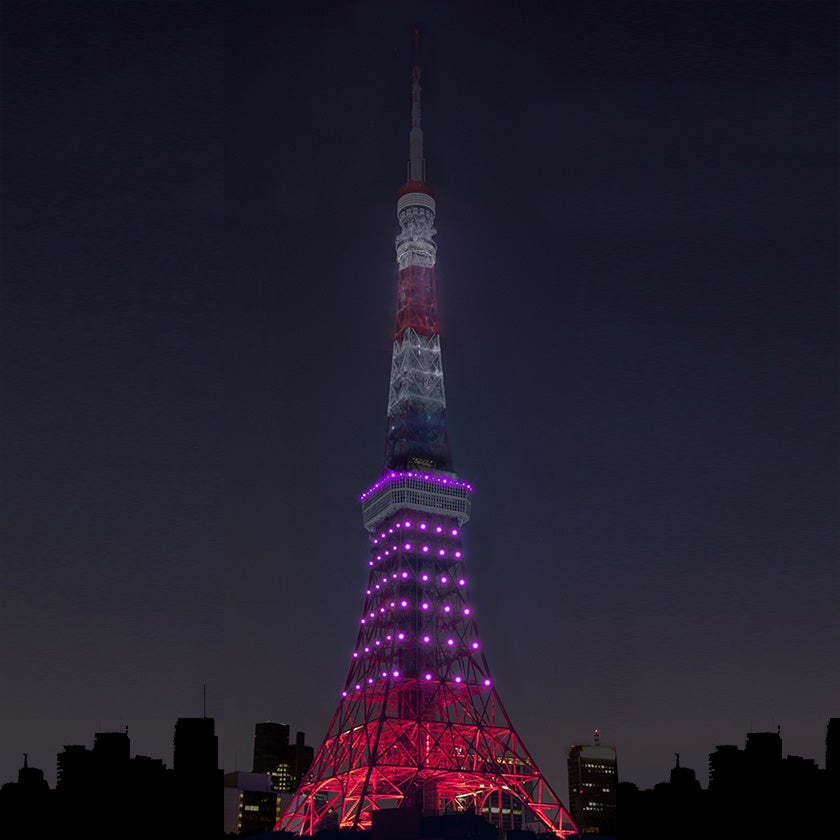 「インフィニティダイヤモンドヴェール 中秋の名月」には、『名月の光との共存』というメッセージが込められており、月を引き立てるために、東京タワーの上部と足元を消灯し、中間を9月のテーマカラーAutumn Purple(秋草色)に点灯する珍しいライトアップです。