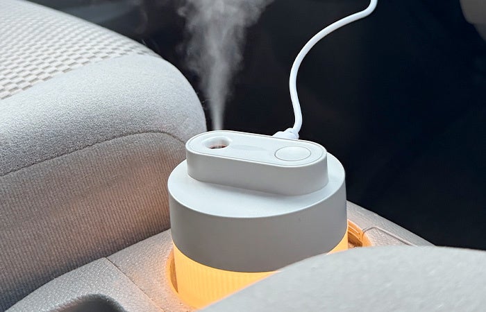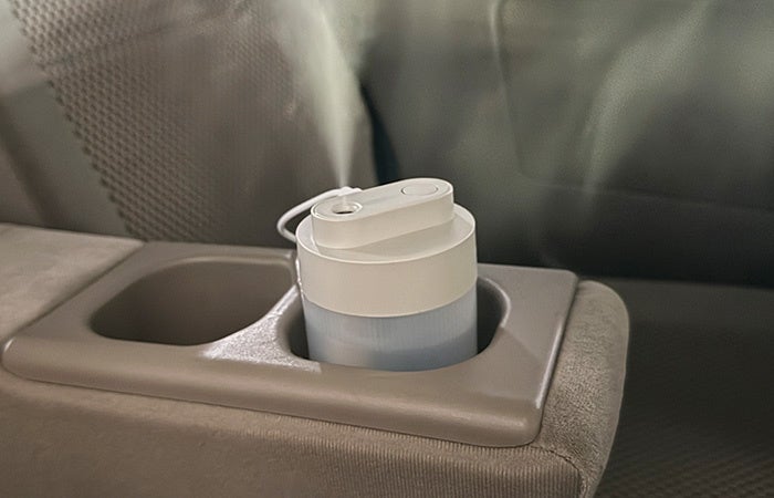 車のドリンクホルダーにもピッタリ収まる「小型USB超音波式加湿器」