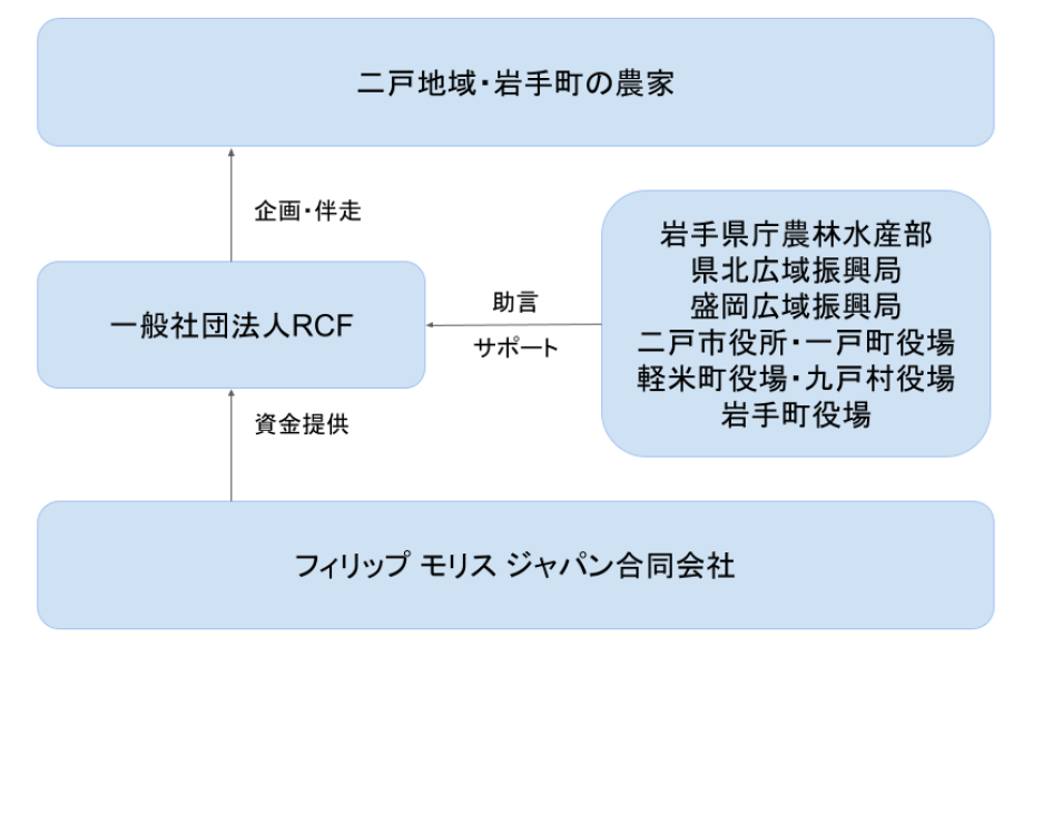 一般社団法人RCF(本社:東京都新宿区、代表理事:藤沢烈))2011年、東日本大震災を機に「RCF復興支援チーム」として設立。復興や社会課題解決事業の立案・関係者間の調整を担う「社会事業コーディネーター」として30以上の被災市町村、10社以上の企業とともに、40以上の社会事業に従事。フィリップ モリス ジャパンとともに岩手県の農業の未来を創る事業の企画・推進を行っていきます。