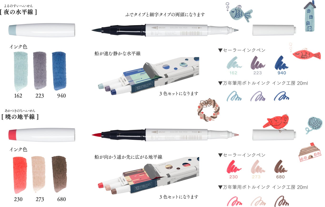 品名:セーラーインクペン 3色セット 夜の水平線、暁の地平線