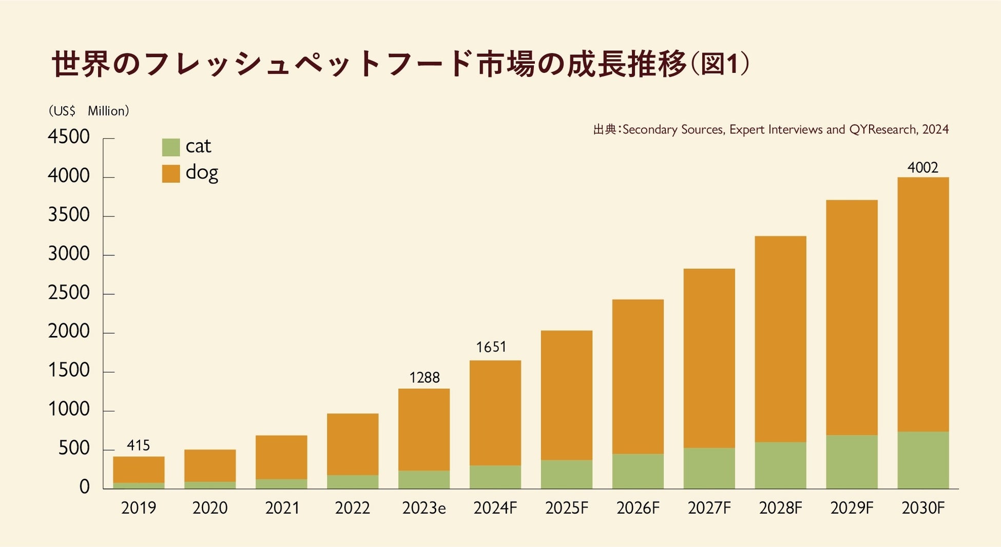 世界のフレッシュペットフード市場は、2024年の16億5,084万米ドルから2030年には40億185万米ドル、CAGR(年平均成長率)は15.90%で拡大すると予測されています。(図1)
