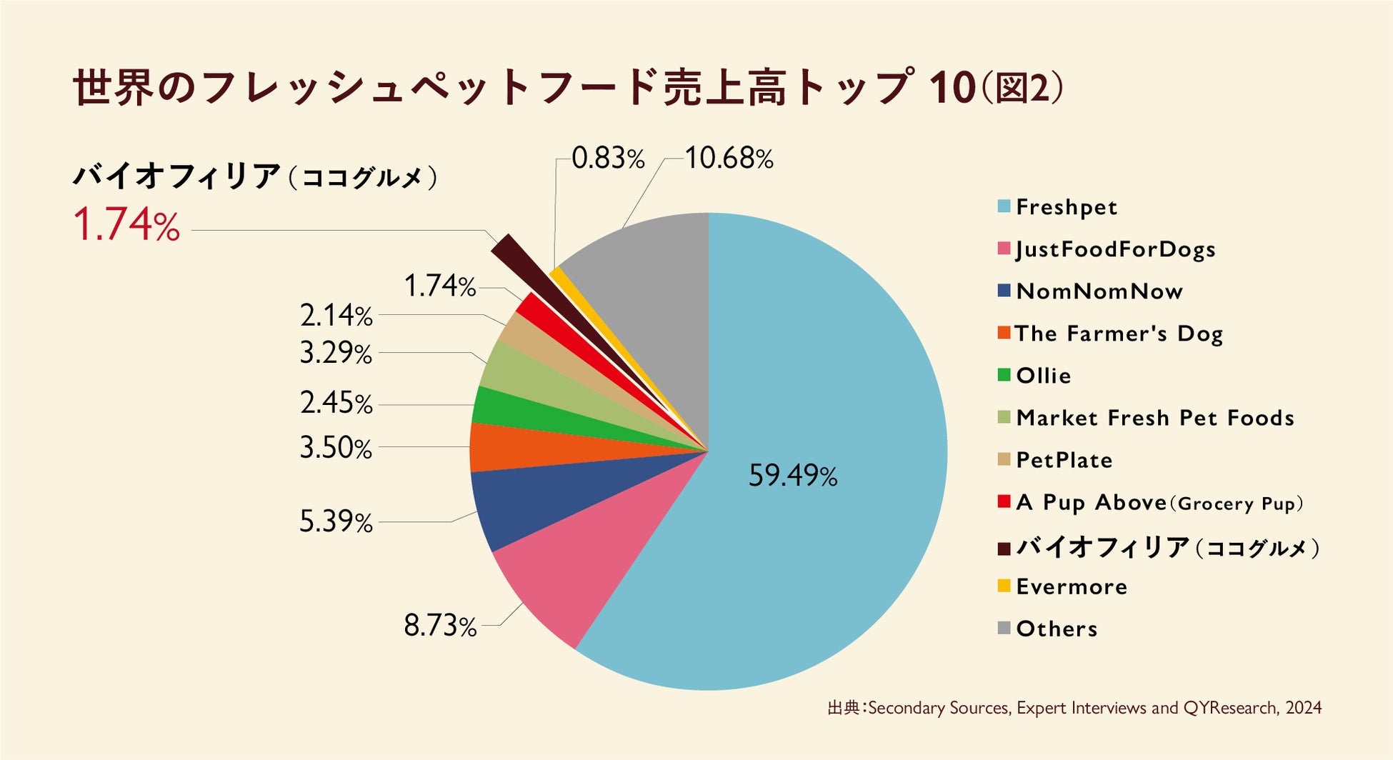 QYResearch社が調査した世界のフレッシュペットフードブランドの売上高トップ10(図2)において当社は世界8位となっております。