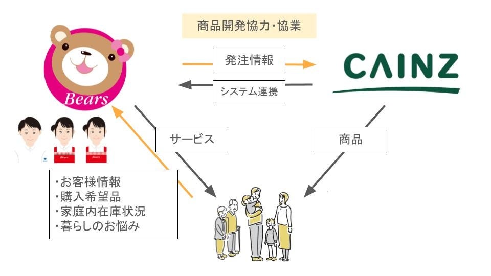 1999年10月に創業し、25年目を迎えた株式会社ベアーズ(本社:中央区日本橋浜町、代表取締役社長:髙橋健志 以下、ベアーズ)は、株式会社カインズ(本社:埼玉県本庄市、代表取締役社長 CEO:高家 正行 以下、カインズ)と提携し、家事代行サービスを定期利用する顧客を対象に、日用品の代理発注を自動で行うサービスを2024年4月18日よりスタートいたします。