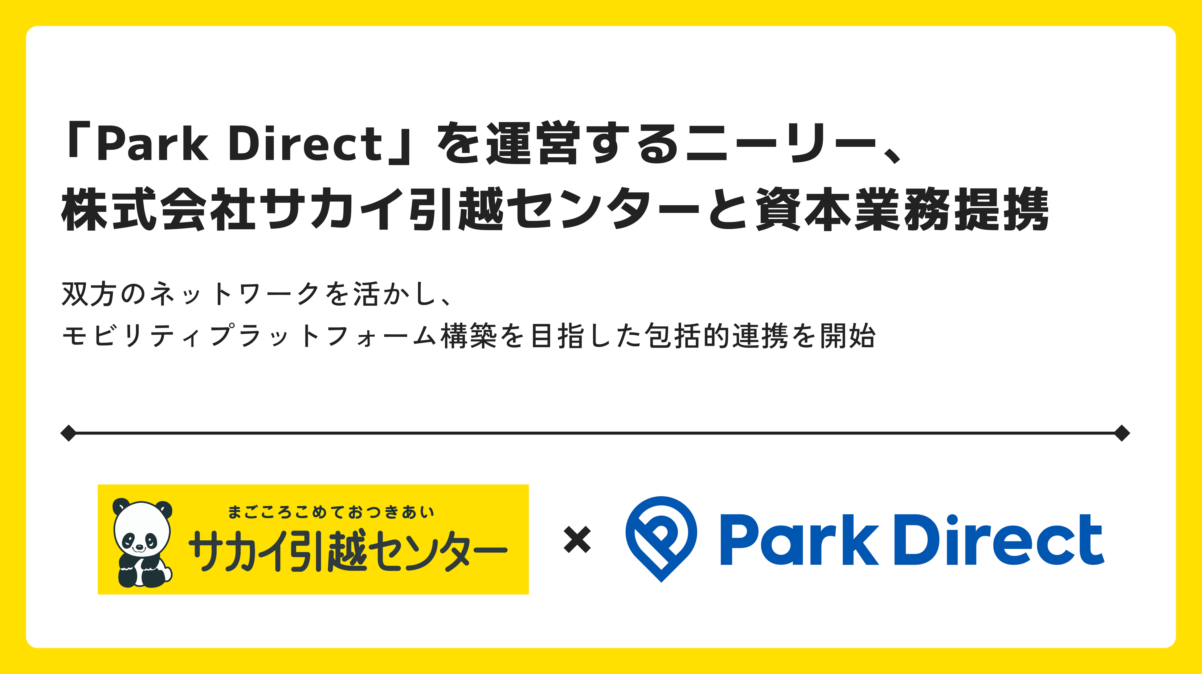 「Park Direct」を運営するニーリー、株式会社サカイ引越センターと資本業務提携