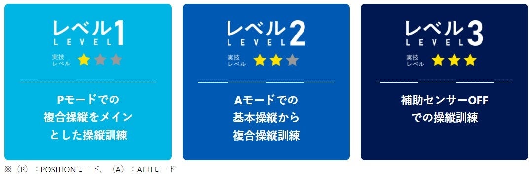実習(操縦スキル)内容を3つにレベル分けをしておりますが、各レベルからご自身に必要な操縦スキル選ぶことができますので、ご自身にあった講習プログラムを講師と一緒に作ることが可能です。