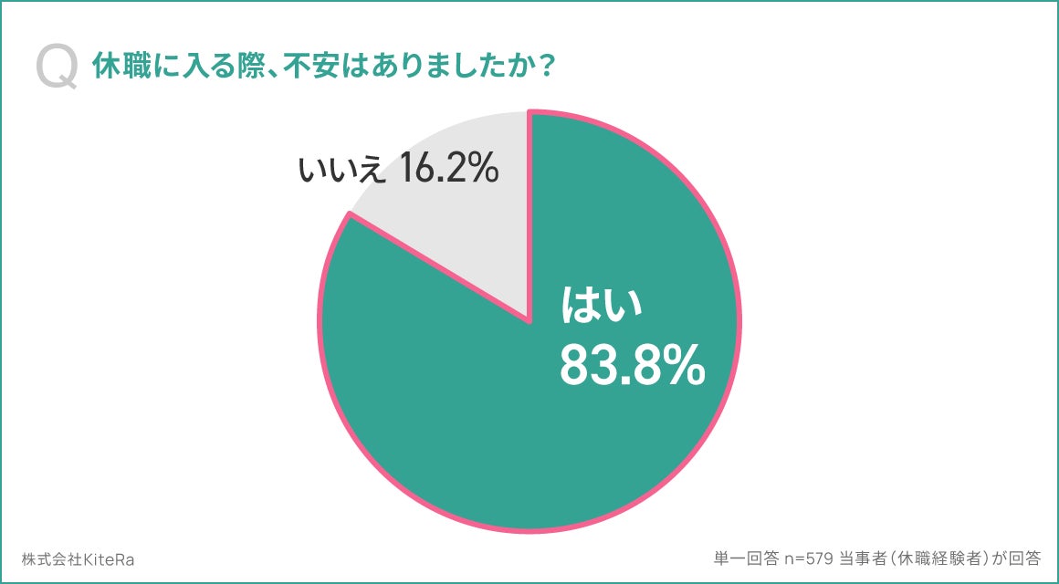 さらに、「休職に入る際、不安はありましたか(単一回答)」と質問したところ、「はい」が83.8%、「いいえ」が16.2%でした。