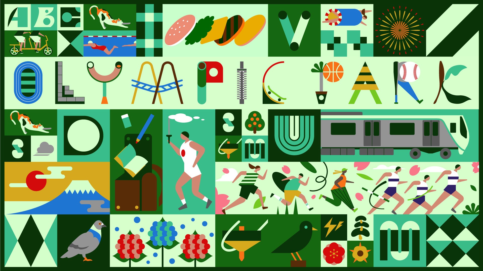 例)都立駒沢オリンピック公園や周辺のまち並みから着想を得たイラスト