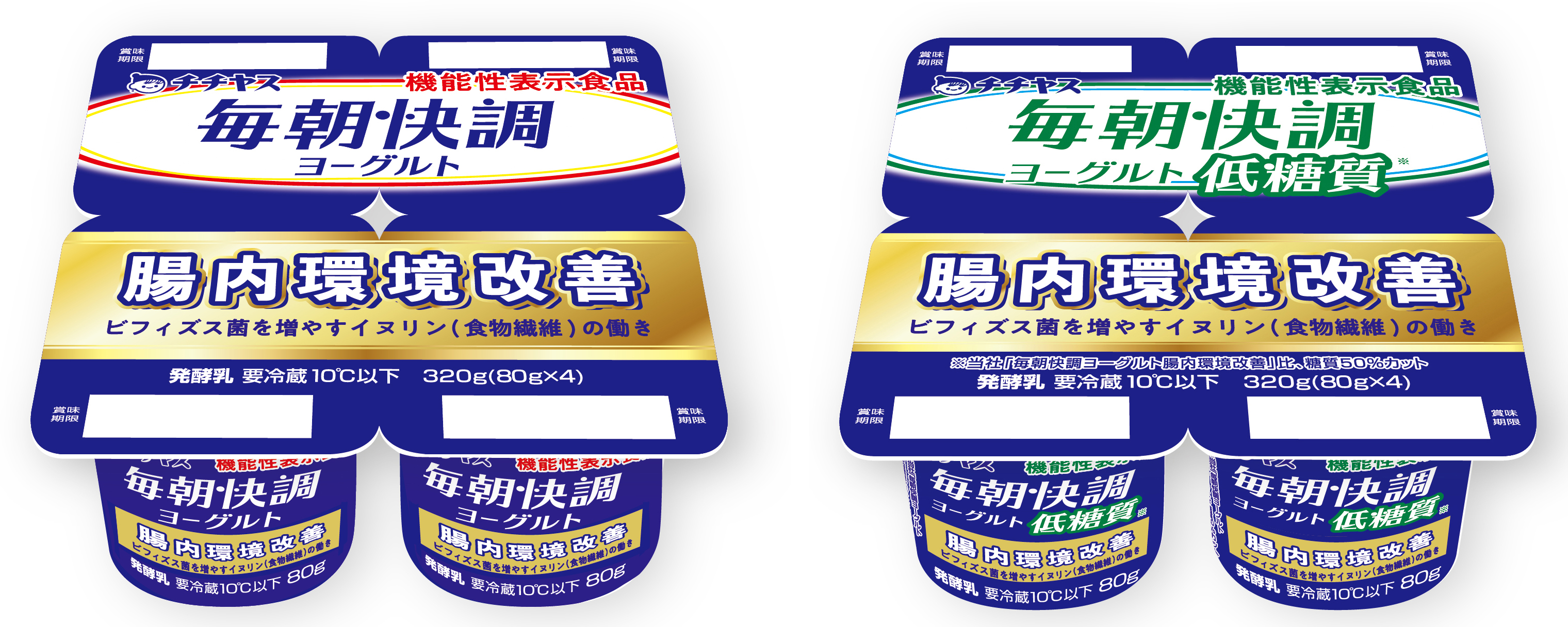 機能性表示食品「毎朝快調ヨーグルト腸内環境改善」「同 低糖質」