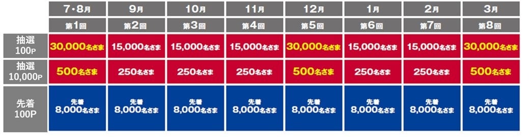 キャンペーン期間中、毎月抽選および先着で、以下のポイントをプレゼントします。