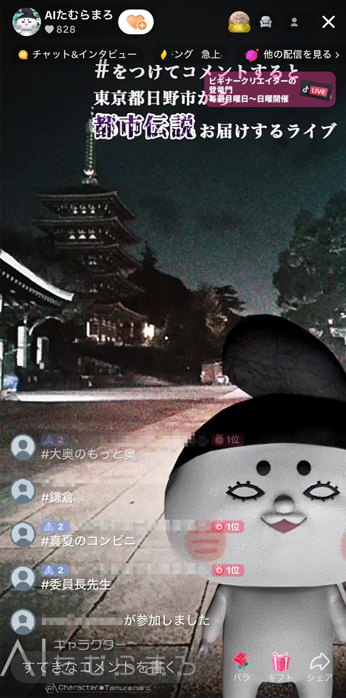 2023年11月13日、TikTok上で「AIたむらまろ」が視聴者からのコメントに双方向でコミュニケーションをするTikTokライブを開催。初の公開実証実験を実施いたしました。# (ハッシュタグ)をつけて参加者がコメントを送ると、そのコメントをテーマに、AIが生成した都市伝説を語るというインタラクティブな会話を楽しめる配信となりました。