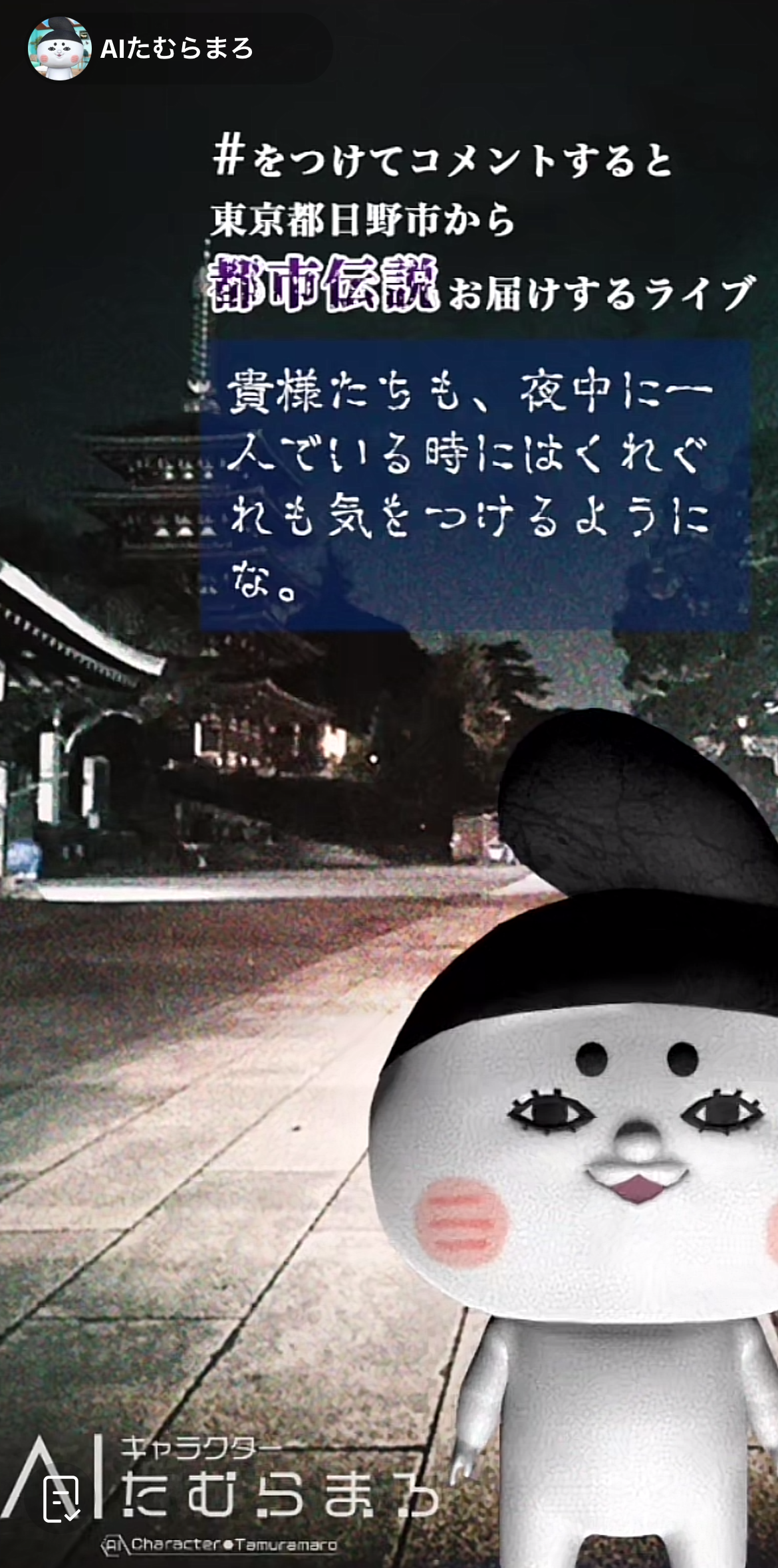 ▷「AIたむらまろ」実証実験『都市伝説配信』について