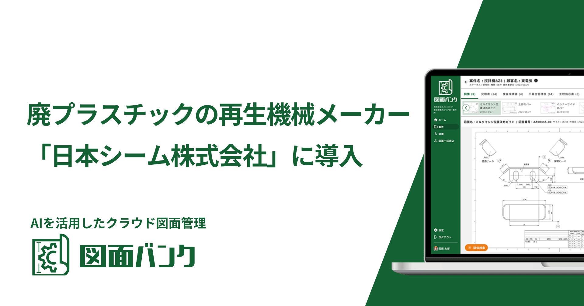 業務効率が飛躍的に向上!廃プラスチックの再生機械メーカー「日本シーム」が、AIを活用したクラウド図面管理システム「図面バンク」を導入