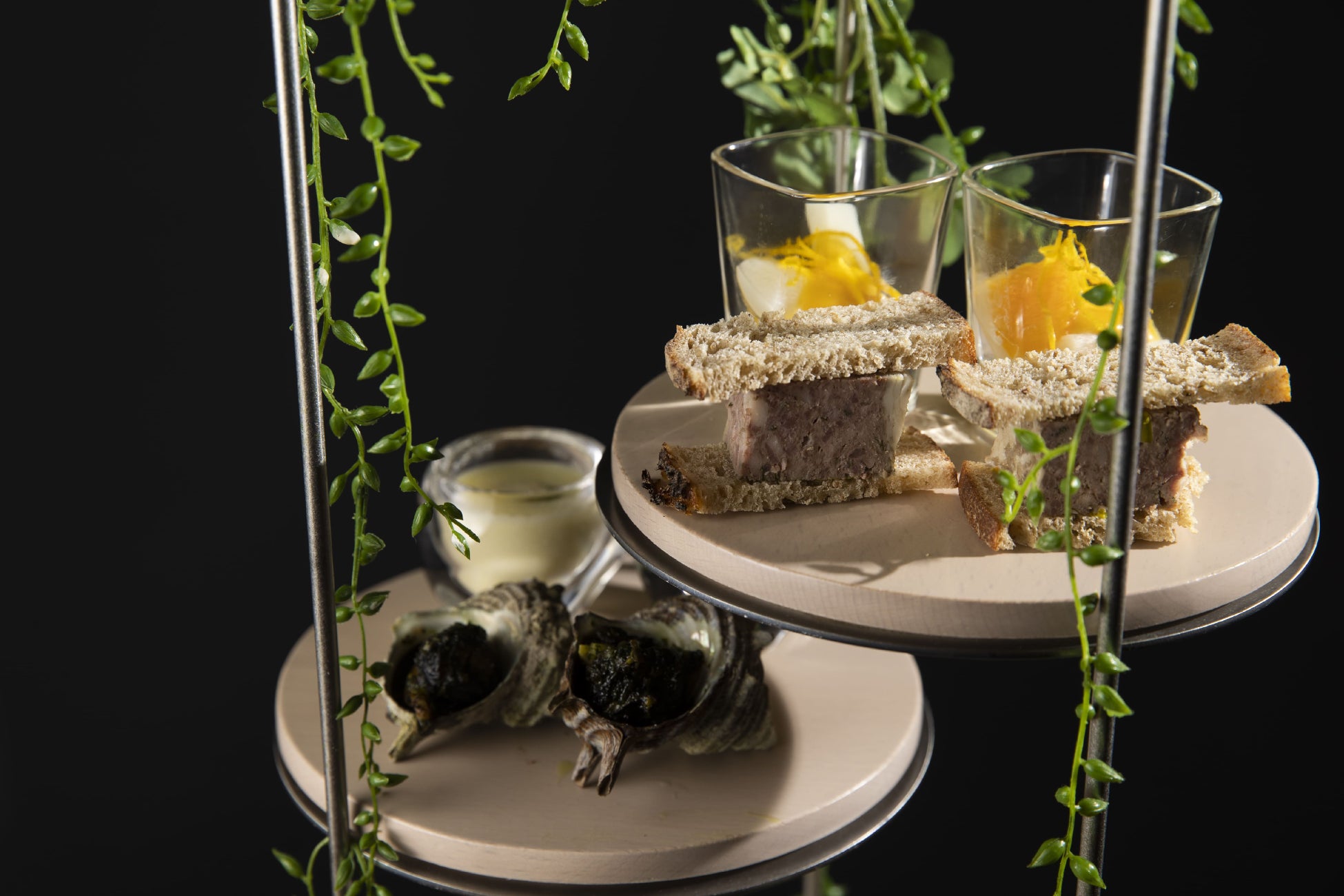⑥ キャビアと桜肉のタルタル/大豆ミートの豆乳パンサンド