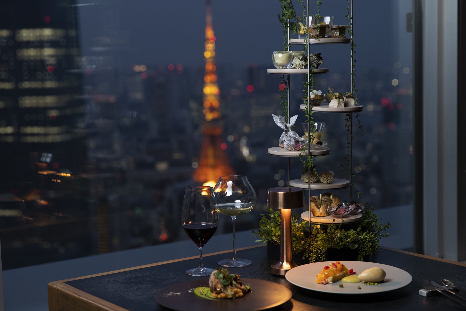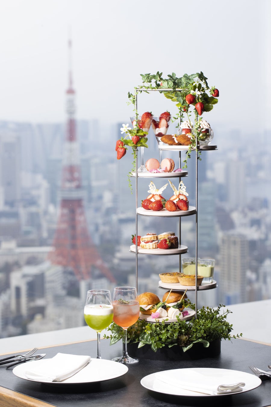 デイタイムには春の訪れを感じる、旬のいちごをふんだんに使用したアフタヌーンティー「Premium Strawberry AfterMOON Tea」を展開中。六本木ヒルズ森タワーのシルエットと店名「MOON(=月)」をイメージした高さ 70cm を超える大迫力のアフタヌーンティーで、パティシエこだわりのスイーツ 8種とセイボリー4 種を楽しめます。またナイトタイムには春を感じる旬にこだわった増谷シェフ渾身のスペシャルコースをご用意。まるで天空の森にいるような非日常空間の中で、お花見気分を味わえる特別メニューをお楽しみください。