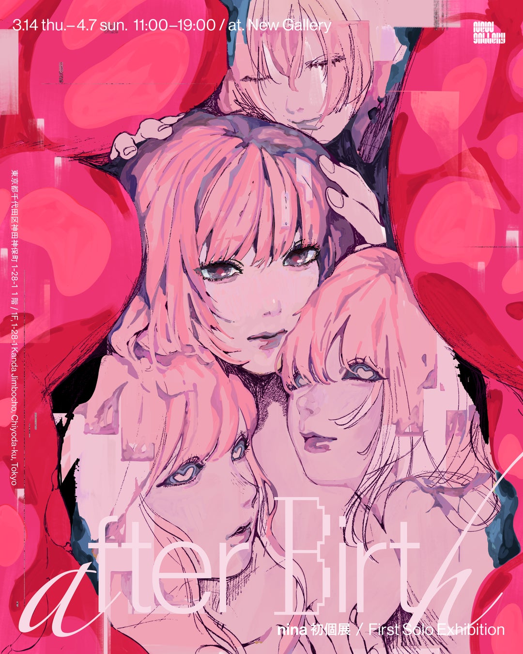 2023年11月、“藍にいな”から“nina”へと改名。新たな名で迎える初個展「AfterBirth」は、これまでの漫画・アニメーション・イラストレーションといった活動の枠組みでは捉えきれない、美術家としての“nina”の現在が感じられる展示となっています。
