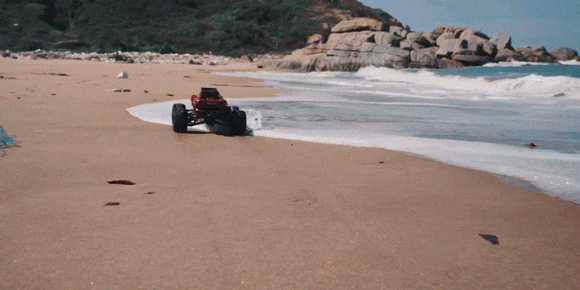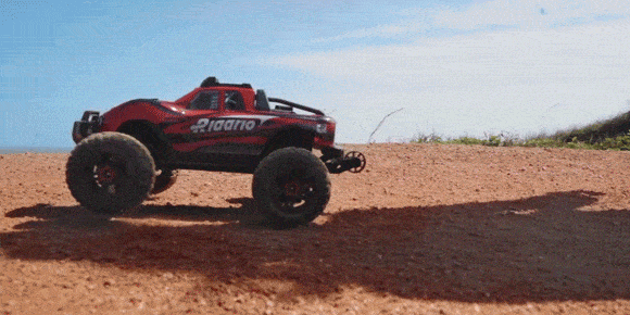 「RLAARLO」は大きい四輪で駆動するラジコンカーで、陸地、ビーチ、沼地、草原、山道、岩などさまざまな地形を簡単に突破!