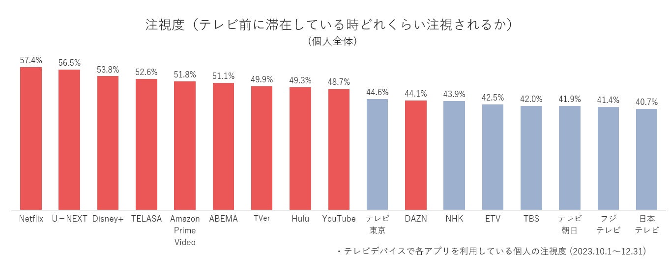昨年に引き続き、注視度は地上波より動画サービスのほうが高い!